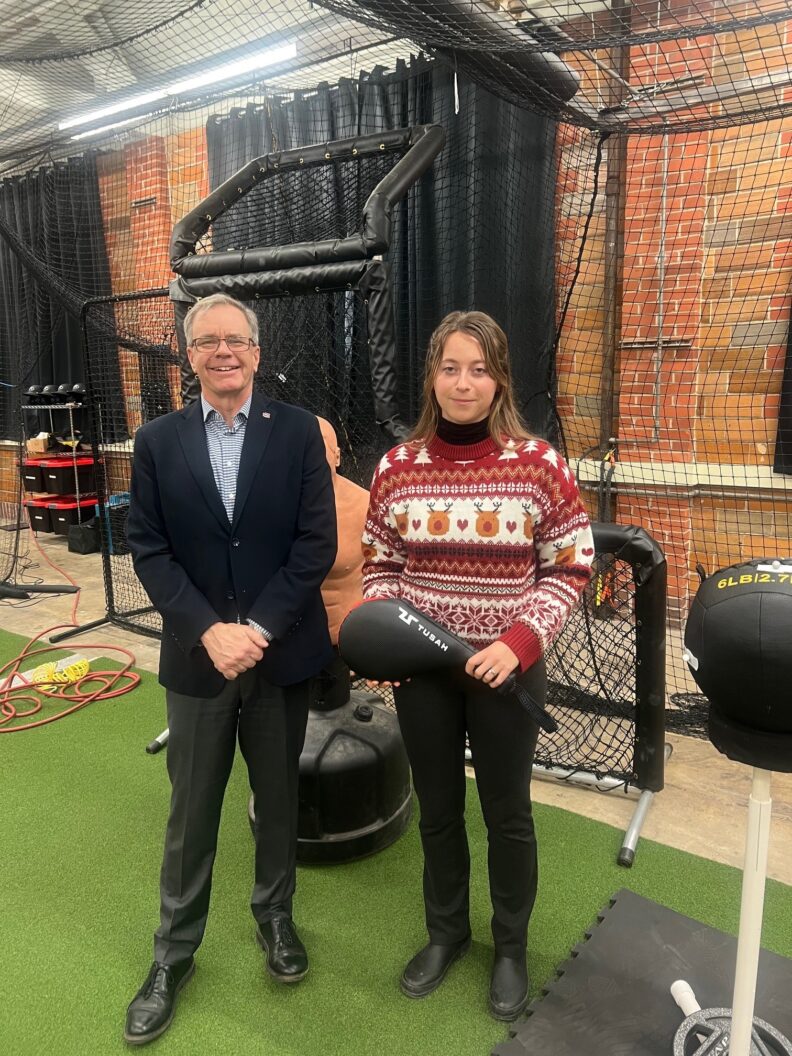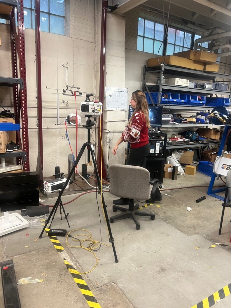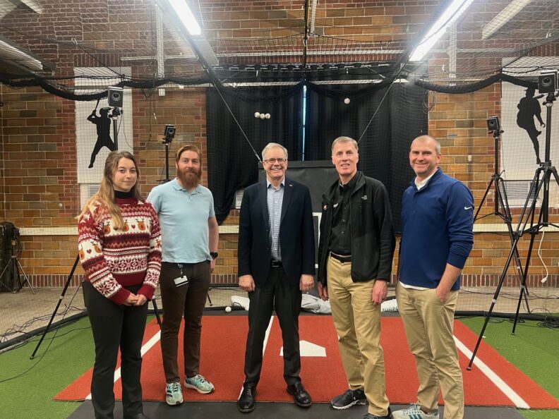 Smith showed Keane a variety of ways the lab conducts research and the safety measures in place, including pitching force cannons, motion tracking, baseball bat and ball certifications, taekwondo research for protective headgear, ball drag rate analysis, bat spring analysis, and bat conditioning.